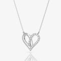 Graceful Heart-Shaped Necklace: Interlocking loops of glittering pave CZ stones give shape to this charming heart-shaped pendant. The two parts design displayed in sterling silver with a gleaming touch of rhodium bestows a chic look.