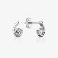 Elementary Curvilinear Earrings: The art of minimalistic elegance exhibits itself from this pair. Two round cut CZ stones sit graciously at the ends of two graceful curves, artfully designed in rhodium over sterling silver.