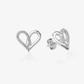 Graceful Heart-Shaped Earrings: Interlocking loops of glittering pave CZ stones give shape to these charming heart-shaped studs. The two parts design displayed in sterling silver with a gleaming touch of white gold bestows a chic look.