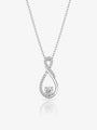 Sparkling Infinity Pendant: An elegant sculptural twist becomes home to a round-faceted CZ stone at the center, with more pave stones enveloping the curves. The sparkle of the stones complements the gleam of the rhodium plating in a surreal manner.