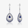 Package Contents: 1 x pair of Sapphire Statement Drop Earrings, rhodium plated and featuring sparkling stones, together with Vihaan's signature box.