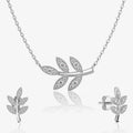 Whisper of Nature: Experience timeless elegance with our Sterling Silver Leaf Pendant & Earrings, delicately crafted to perfection and kissed with a radiant rhodium plating. A whisper of nature combined with luxurious shimmer, this necklace set is the embodiment of sophistication. Drape yourself in the beauty of nature's art.